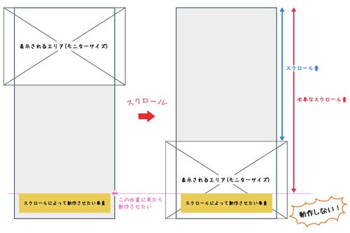 画面をスクロールさせて、特定の要素の場所に来た時にアニメーションをさせるなどスクロールに応じたアクションの作成をすることがあります。 複雑なものの場合ライブラリを使うのが手っ取り早いと思いますが、簡易なものの時や大きなライブラリを読み込ませ…